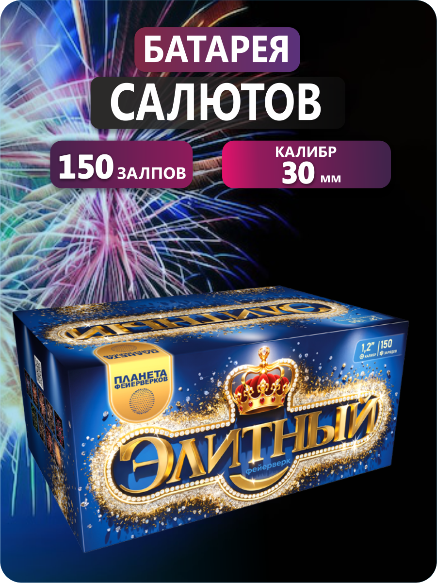 «Элитный» — величественное огненное представление, достойное самых торжественных мгновений! 150 зарядов с калибром 1,2 дюйма взмывают на высоту до 30 метров, чтобы на протяжении 220 секунд дарить зрителям феерию света и звука. Словно драгоценности, рассыпанные по ночному небу, вспышки фейерверка создают неповторимые картины, завораживающие своей красотой. Фейерверк «Элитный»- это изысканное шоу для самых значимых событий!