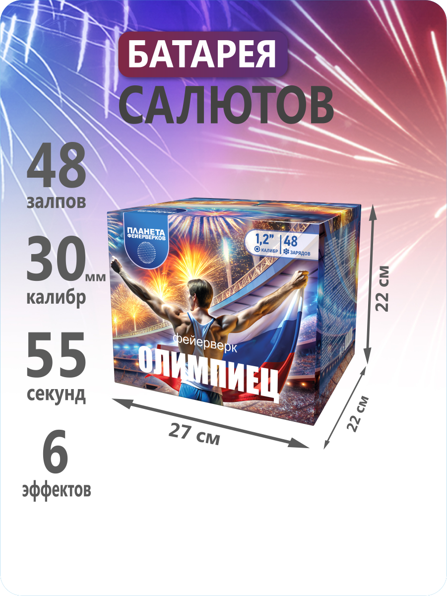 Салют красочный, 48 залпов , калибр 1,2" ;высота разрыва до 30м.