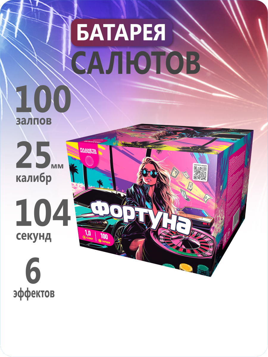 Салют красочный, 100 залпов , калибр 1" ;высота разрыва до 25м.