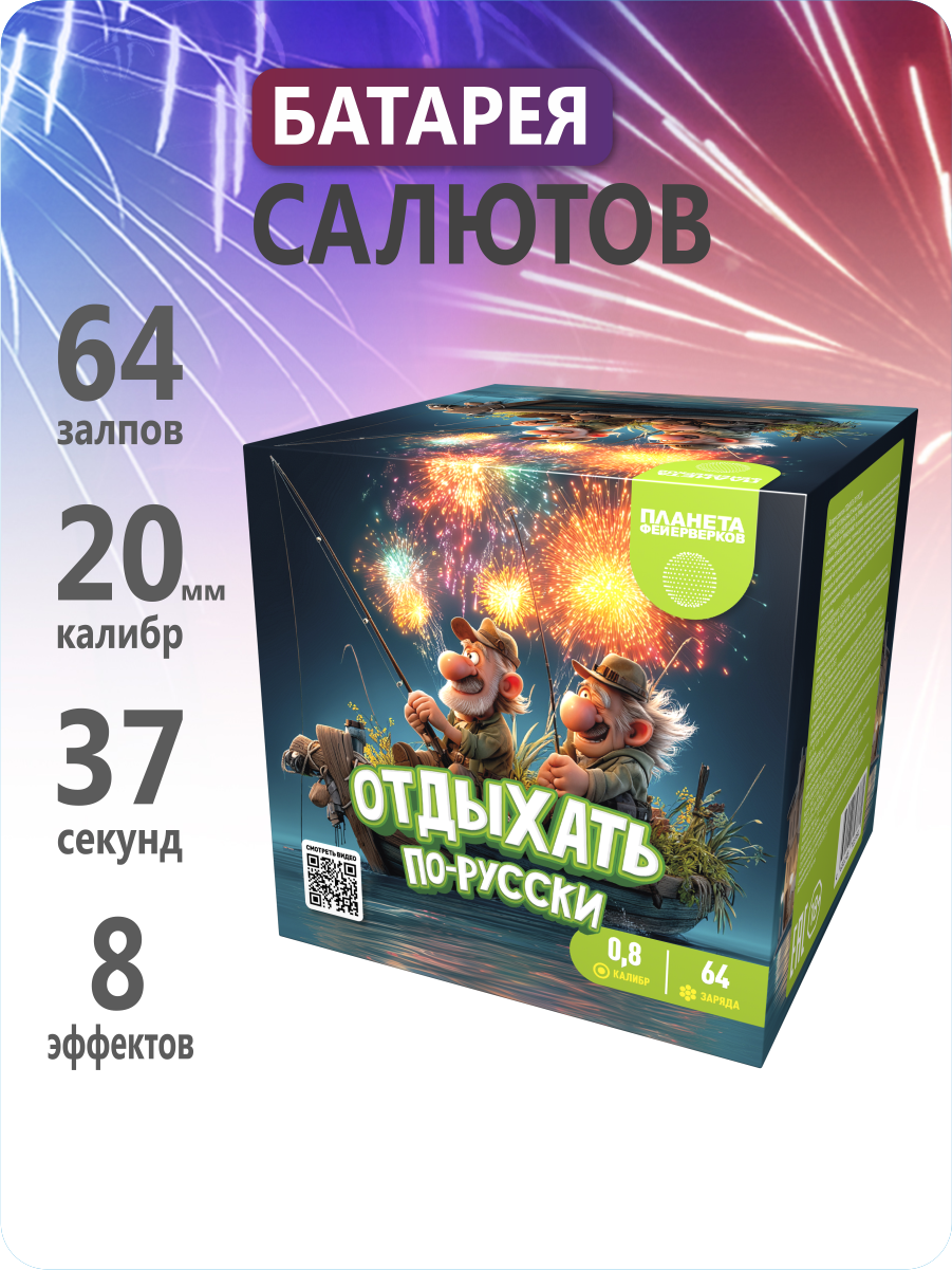 Салют красочный, 64 залпа , калибр 0,8" ;высота разрыва до 20м.