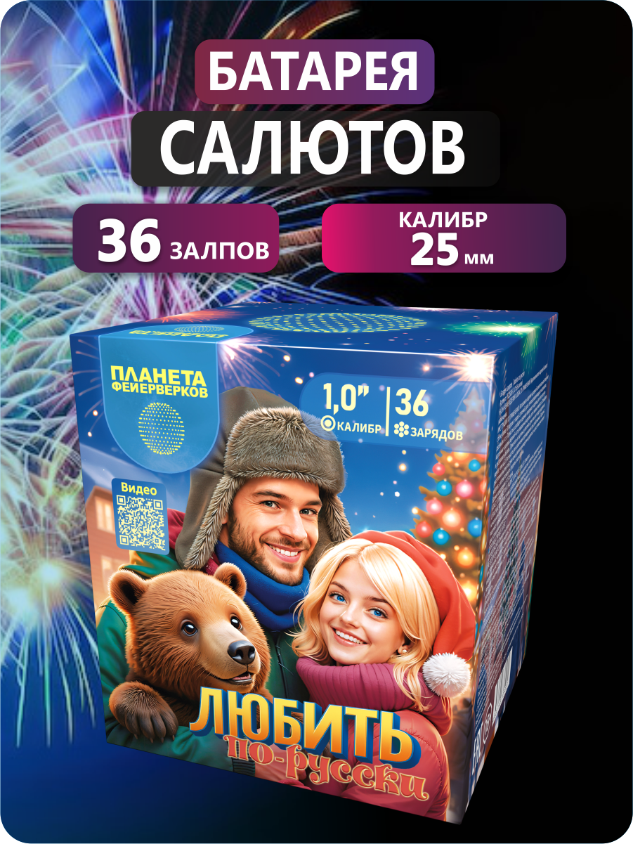 «Любить по-русски» — огненная ода искренним чувствам, написанная на ночном небе яркими красками!Представляем впечатляющее пиротехническое шоу, способное создать атмосферу настоящего торжества. 36 мощных зарядов калибра 1 дюйм создают феерию света и цвета на высоте до 25 метров. Длительность шоу — 50 секунд незабываемых впечатлений. Идеален для любых событий, где хочется выразить самые тёплые чувства. Пусть ваш праздник озарится теплом и светом фейерверка «Любить по-русски»!