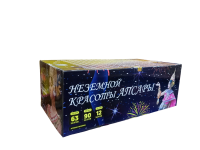Красные и зеленые георгины с золотым, красным и зеленым мерцанием; красные и белые мерцающие брызги; цветные георгины в трещащих облаках; красные и зеленые пионы с золотыми пальмами внутри сферы; фиолетовые георгины с золотыми ивами и белым мерцанием; пучки красных и синих звезд (мины) с трещащими шлейфами; искристые хризантемы, мерцающие красным. 25мм-63шт; 50мм-12шт; 30мм-90шт.