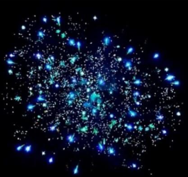 Красные и фиолетовые жемчужины с белым мерцанием.. Пурпурные кометы рассыпаются синими и зелеными жемчужинами. Зеленые кометы раскрываются множеством трещащих сфер. Финал из множества разноцветных жемчужин с мерцанием, переходящих в трещащие пионы. Яркие искры танцуют в воздухе, создавая завораживающие узоры, которые на мгновение замирают, а затем распадаются на множество мелких частиц.