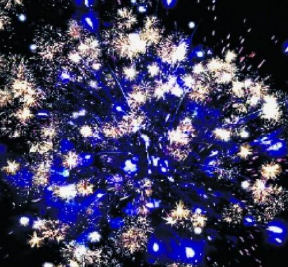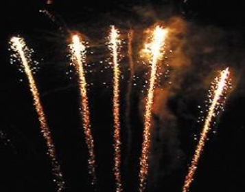Красные кометы переходят в красные пальмы с мерцанием. Зеленые кометы переходят в зеленые и серебряные хризантемы с треском. Синие кометы переходят в парчовые короны с синим жемчугом. Серебряные кометы осыпаются дождем. Красные кометы переходят в серебряные жемчужины и трещащие хризантемы. Зеленые кометы переходят в серебряные трещащие хризантемы. Синие кометы переходят в опадающие ивы. Серебряные кометы переходят во множество блестящих осыпающихся дождем ив. Фейерверк-это волшебное зрелище, которое наполняет ночное небо яркими красками и звуками.